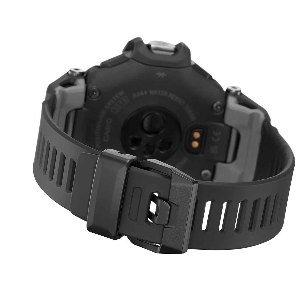 Японские мужские часы-хронограф Casio G-Shock GBD-H2000-1B, кварцевый механизм с высокой точностью. Минеральное стекло устойчивое к появлению царапин, обладающее высокой прозрачностью. Модель в серии G-SQUAD изготовлена из экопластика на основе кукурузы. Мультиспортивный профили: бег, ходьба, езда на велосипеде, плавание и др. Питание от солнечной энергии Tough Solar. Функция автоматического сохранения энергии. Время работы аккумулятора без подзарядки: 19ч (кратковременное использование GPS, пульсометра), 14-16ч (непрерывное использование GPS, пульсометра), 2 месяца (без использования пульсометра), при включенной функции сохранения энергии до 23 месяцев. Возможность зарядки через специальный кабель с разъемом USB типа A. Ударопрочный корпус защищает механизм от ударов и вибрации. Светодиодная автоматическая супер-подсветка с выбираемой длительностью свечения 1,5 или 3 сек. Цвет подсветки: белый. Дисплей mip LCD позволяет легко считывать данные даже в темноте. 12-ти и 24-х часовой формат времени. Секундомер с точностью показаний 1с и временем измерения 100ч. SPLIT-хронограф. Таймер обратного отсчета от 1сек до 1ч. Мировое время – 38 городов (38 часовых поясов), всемирное координированное время (UTC). Функция включения/отключения летнего времени. Отображение возраста и фазы луны. Время восхода и захода Солнца на конкретную дату. Измерения уровня кислорода в крови. Функция тренировки отображает данные о расстоянии, скорости, темпа, сожженных калорий (до 100 пробежек, до 200 кругов за одну пробежку). Приложение Life Log Data отобразит ежедневное количество шагов или ежемесячные данные о пробежках. Измерение частоты сердечного пульса (max: 220 ударов в минуту). ЧСС, заданная ЧСС, графическая индикация зоны ЧСС, график ЧСС, max ЧСС и min ЧСС. Тренировочный анализ: состояние тренировки, тренд уровня физической подготовки, тренд тренировочной нагрузки, время восстановления. Измерение сна. Встроенный GPS датчик определяет точное время и местоположение. Отображение расстояния, скорости, темпа и других расчетных значений на основе данных GPS. 3-осевой акселерометр автоматически начинает отсчет шагов на дисплее, когда вы начинаете бегать или участвовать в других действиях во время ношения часов. Шагомер измеряет количество шагов от 0 до 99999. Гироскоп позволяет определять изменение ориентации спортсмена в пространстве и дает возможность измерить количество взмахов рук, гребков и показатель SWOLF. Синхронизация со смартфоном по Bluetooth. При подключении к смартфону часы корректируют текущее время, позволяют настроить мировое время (до 300 городов), получать уведомления и др. Термометр от -10° до +60°С (от 14 до 140 °F) с точностью 0,1°C. Барометр - измерение атмосферного давления от 260 до 1100 гПа (от 195 до 825 мм рт. ст.). Информация о тревоге изменения атмосферного давления (звуковой сигнал информирует о значительном изменении давления). Встроенный цифровой компас. Диапазон измерения от 0° до 359° с точностью 1°. Автоматическая коррекция уровня. Высотомер - встроенный датчик барометрического давления с возможностью вывода результатов в единицах высоты над уровнем моря от -700 до 10000 метров (от –2 300 до 32 800 футов). Единица измерения 1м (5 футов). Переключение между метрами и футами. Режим полета. Функции отключения/включения звука, виброоповещения и поиска телефона. Задняя крышка крепится на 4-х винтах. Ремешок из полимерного ма