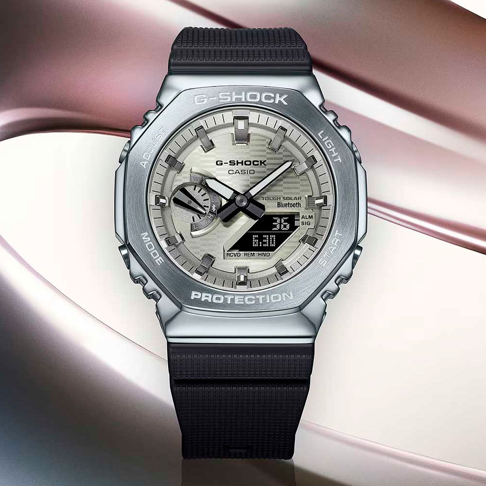 Мужские Casio G-Shock GBM-2100A-8B — это технологичный аксессуар, сочетающий в себе устойчивость к внешним воздействиям и высокую точность. Корпус модели выполнен из пластика и нержавеющей стали, что придаёт ей прочность и устойчивость к царапинам. Корпус имеет размеры 44,4х49,3мм, а его вес составляет 72 г. Защиту механизма обеспечивает минеральное стекло, устойчивое к повреждениям. Браслет выполнен из пластика со стандартной застежкой. Часы оснащены функцией Bluetooth, которая подключается к смартфону, обеспечивая автоматическую синхронизацию времени и простоту настройки. Система поддерживает 38 часовых поясов, включая всемирное координированное время, и автоматически переключается на летнее время. Функциональность модели включает секундомер с точностью до 0,01 секунды, таймер обратного отсчёта (до 60 минут), будильник, светодиодная подсветка и полный автоматический календарь до 2099 года. Водонепроницаемость 200 бар позволяет использовать модель при плавании и других водных активностях без глубокого погружения. Эти часы станут универсальным аксессуаром для тех, кто ценит сочетание стиля, функциональности и надёжности — идеальный выбор для повседневной носки и активного образа жизни.