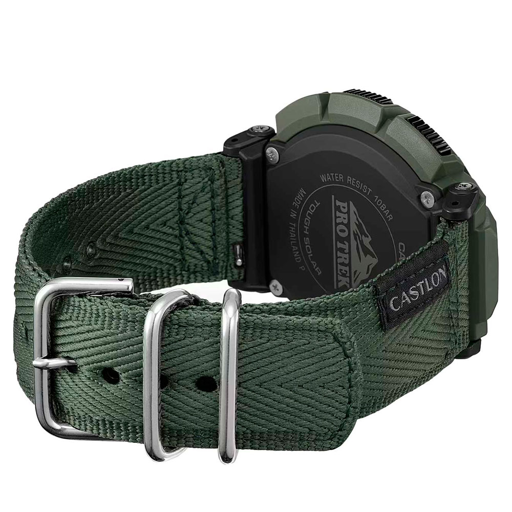 Удобное расположение кнопок позволяет управлять устройством в одно касание. Функция отключения/включения звука кнопок. Вращающийся безель. Задняя крышка крепится на 4-х винтах. Нейлоновый ремешок CASTLON® покрыт огнестойким покрытием и изготовлен из растительного сырья. Классическая застежка и система быстрой замены.