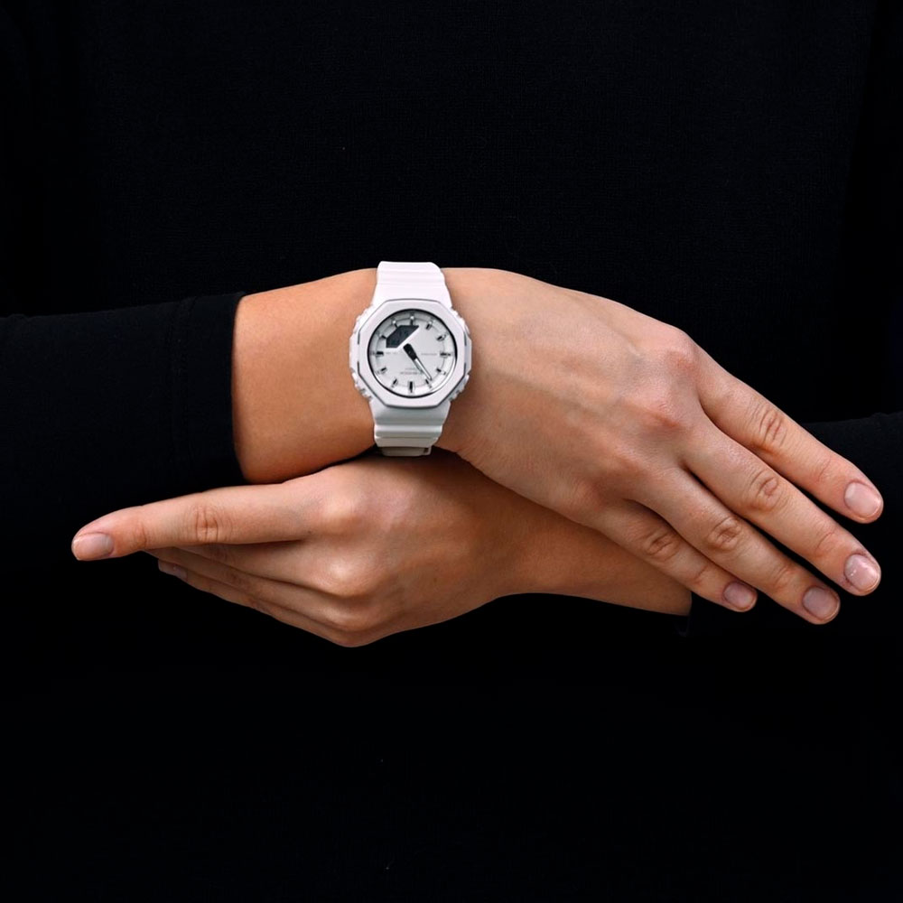 G-Shock. Женские часы. Корпус и ремешок выполнены из биопластика, который изготавливается из возобновляемых органических ресурсов. Противоударный корпус защищает механизм от ударов и вибрации.
