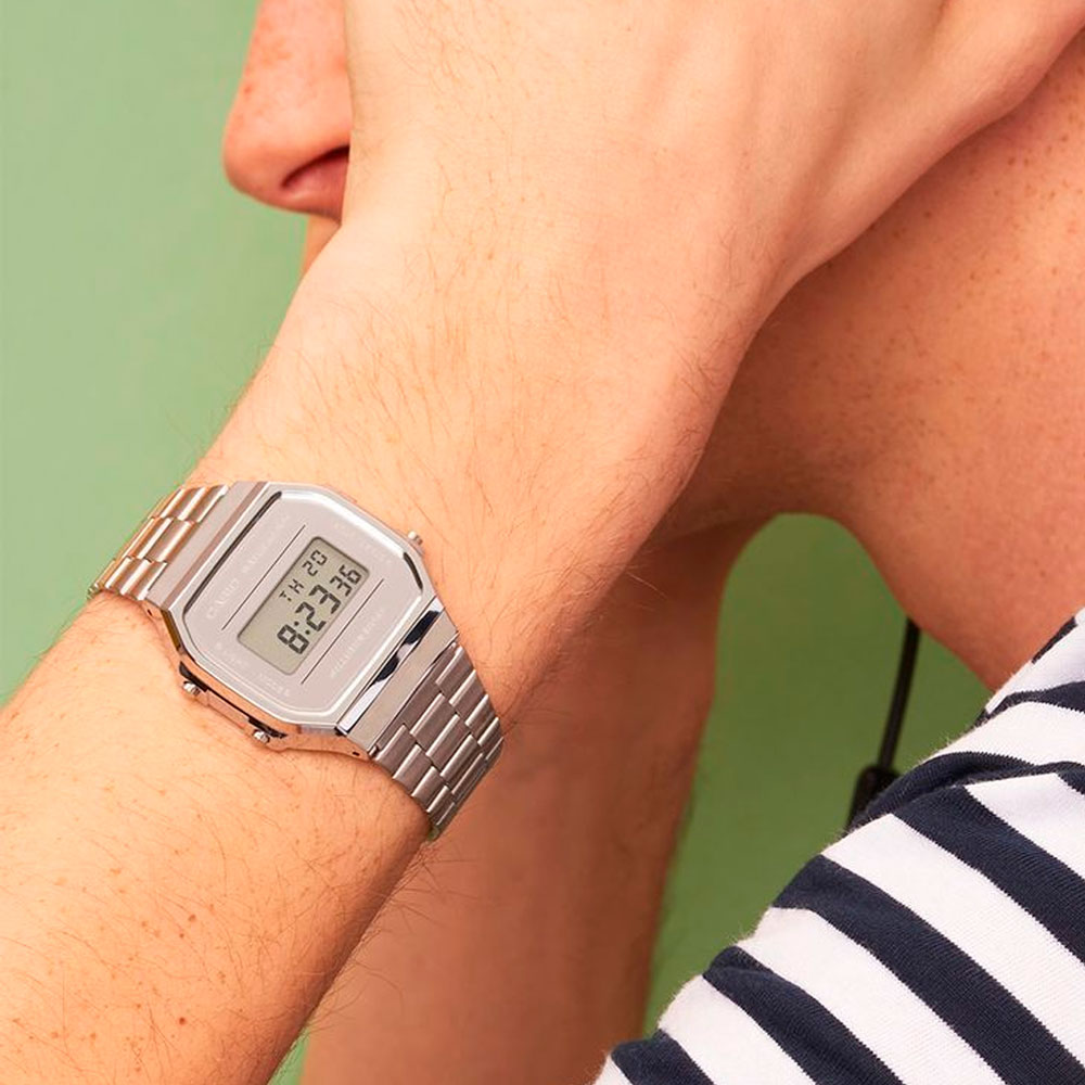 Винтажные часы украсят запястье молодежи, которые знают толк в элегантных аксессуарах. Iconic. Унисекс. Электролюминесцентная подсветка освещает весь циферблат. После отпускания кнопки, свечение продолжается еще некоторое время. Секундомер с точностью показаний 1/100с и временем измерения до 1ч. 12-ти и 24-х часовой формат времени. Задняя крышка крепится на 4-х винтах. Браслет с системой быстрой замены. Раскладывающаяся застежка с блокировкой.